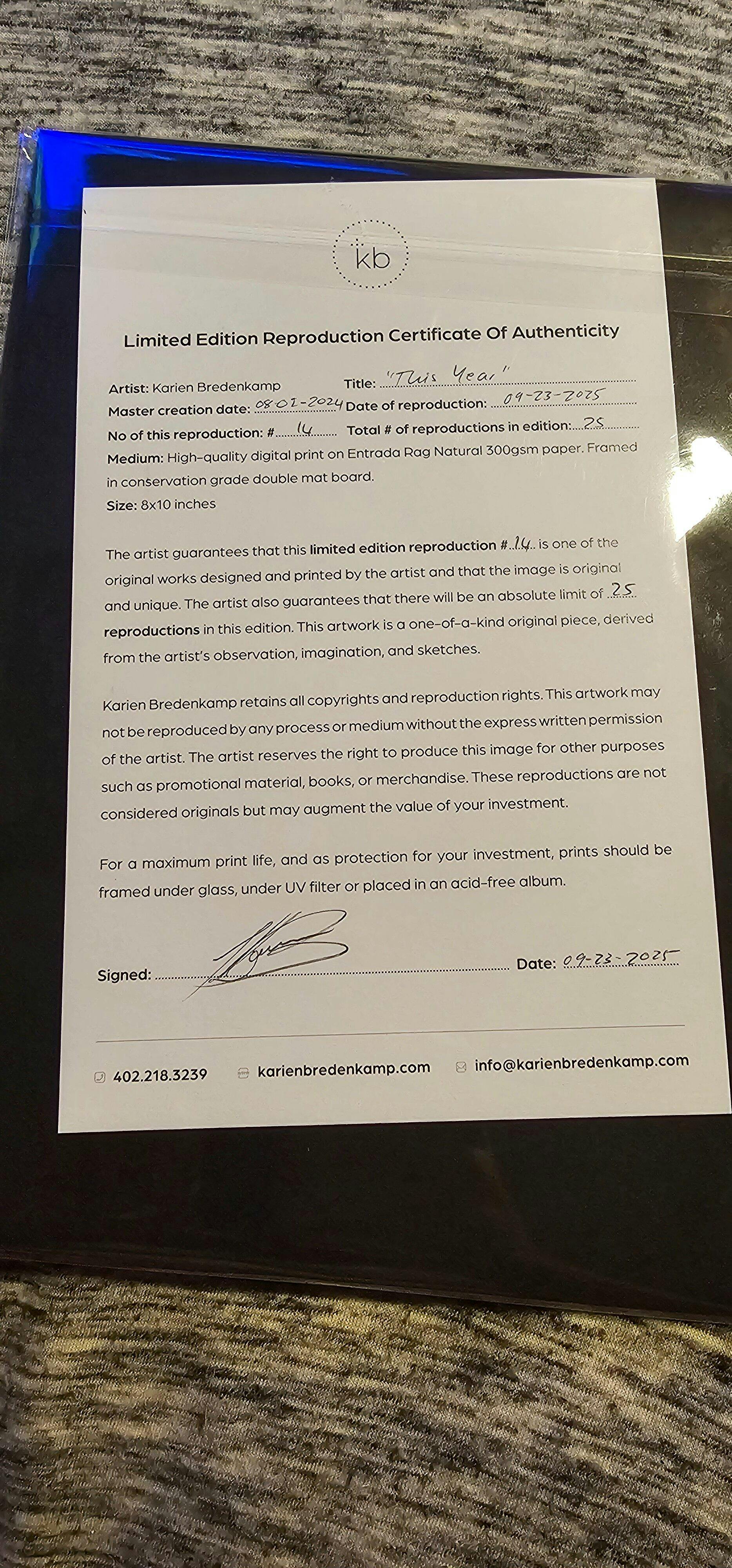 - Limited Edition Print: Signed, dated, edition number & certificate of authenticity included.